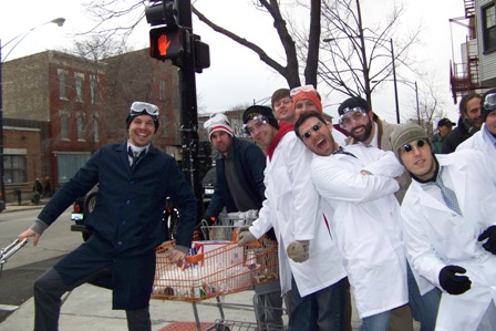 Now in its 10th year, the Chicago Urban Iditarod, affectionately known as the Chiditarod, is an annual shopping cart race through the Wicker Park and Ukrainian Village Chicago neighborhoods. The date of the event was chosen to coincide with the kickoff of the Alaskan Iditarod. There are some basic similarities between the races, but there is plenty more whimsy involved in this urban setting. Instead of sleds, they use shopping carts. Instead of dogs, they have teams of five humans: four pullers and one musher, all in costumes they have designed for themselves and their cart.